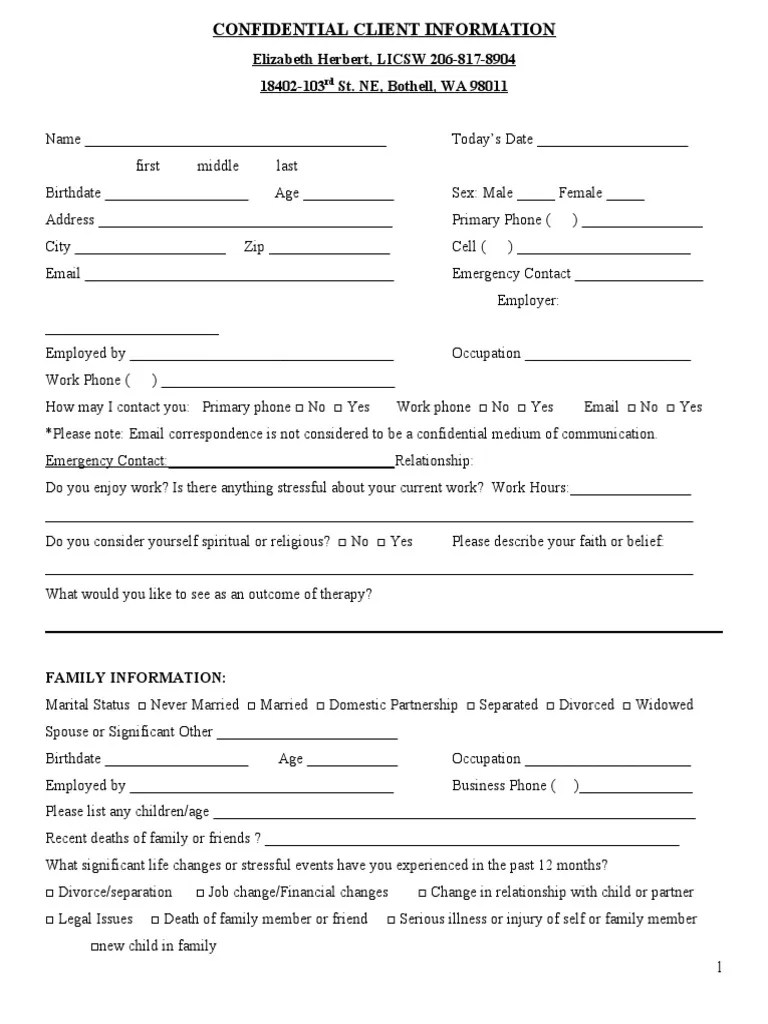 intake form for counseling clients Google Search Counseling