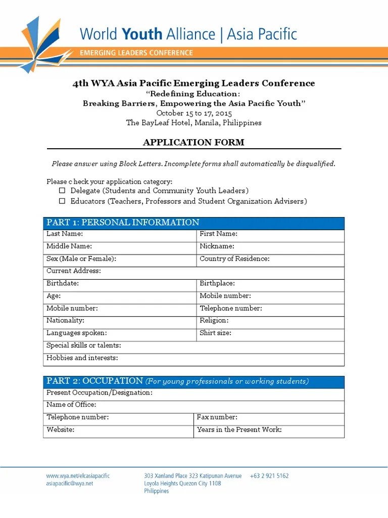 4th WYAAP ELC Application Form PDF Dignity Justice