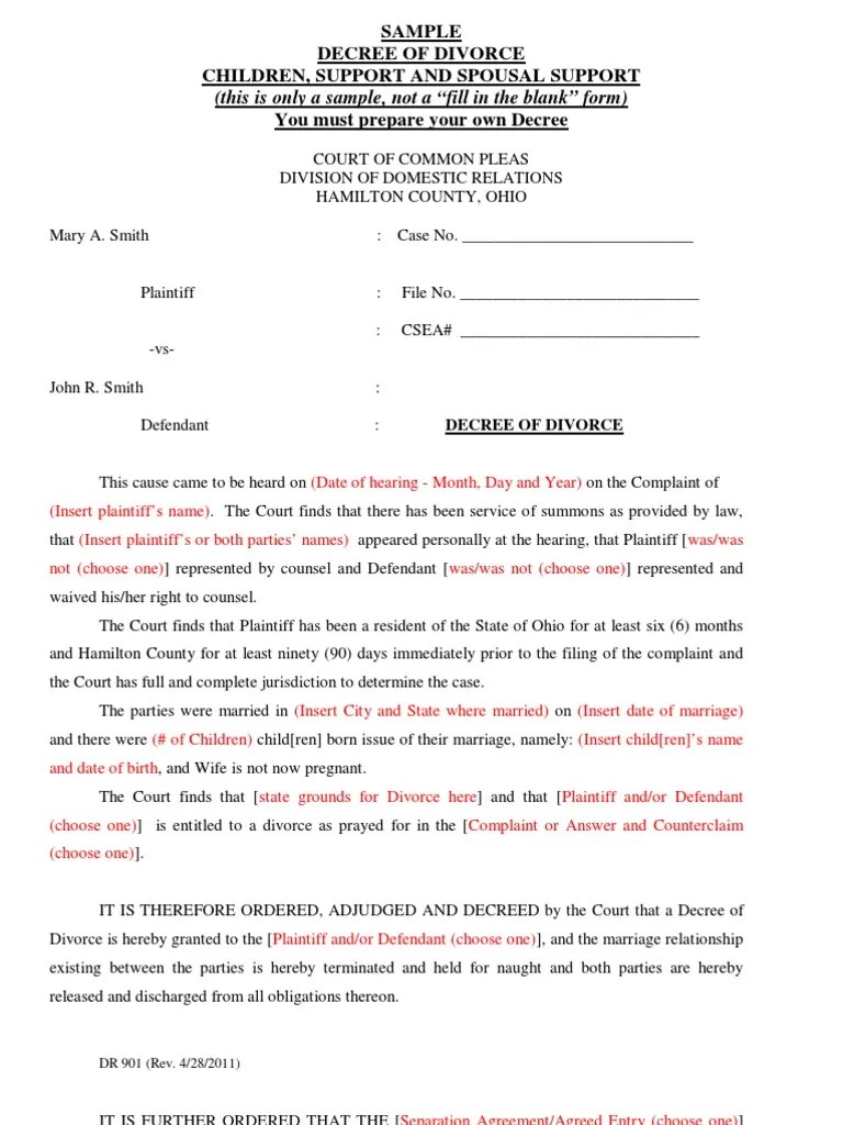 901 Sample Decree of Divorce Children Support and Spousal Child
