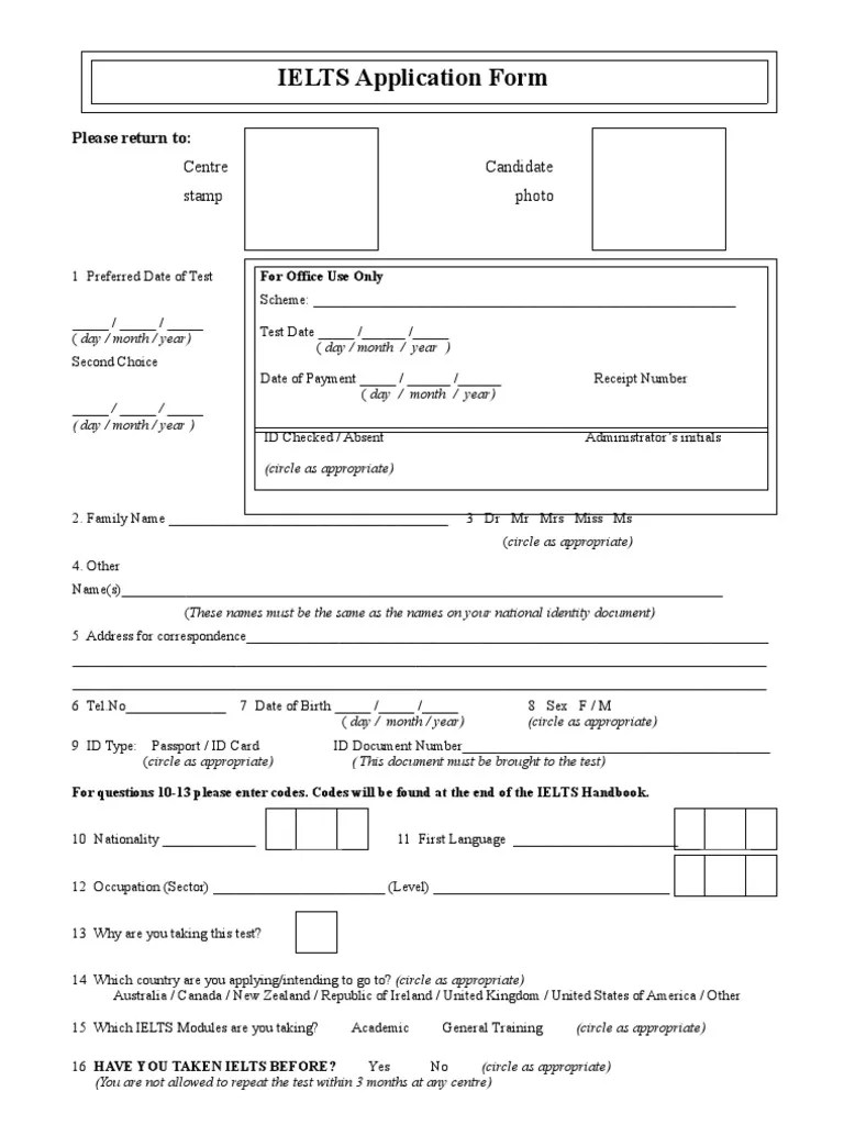 Click to Download IELTS Application Form Identity Document