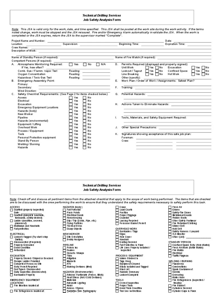 Web general contractor and subcontractor teams typically work together to develop and complete jsa forms. Rarely is a hazard a simple case of one singular cause resulting in one. Web a sample form found in appendix 3 helps you organize your information to provide these details. Web below is an example of templates you may insert into your site specific.