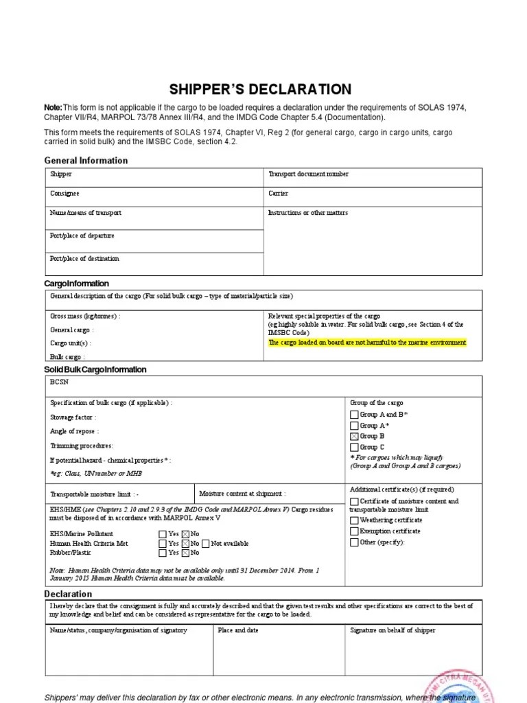 Shipper Declaration PDF Cargo Transport