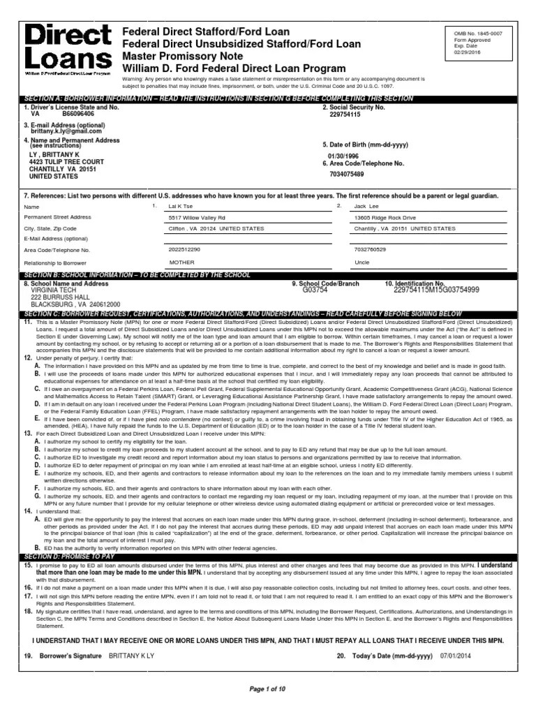 Federal Stafford Loan Master Promissory Note printable pdf download
